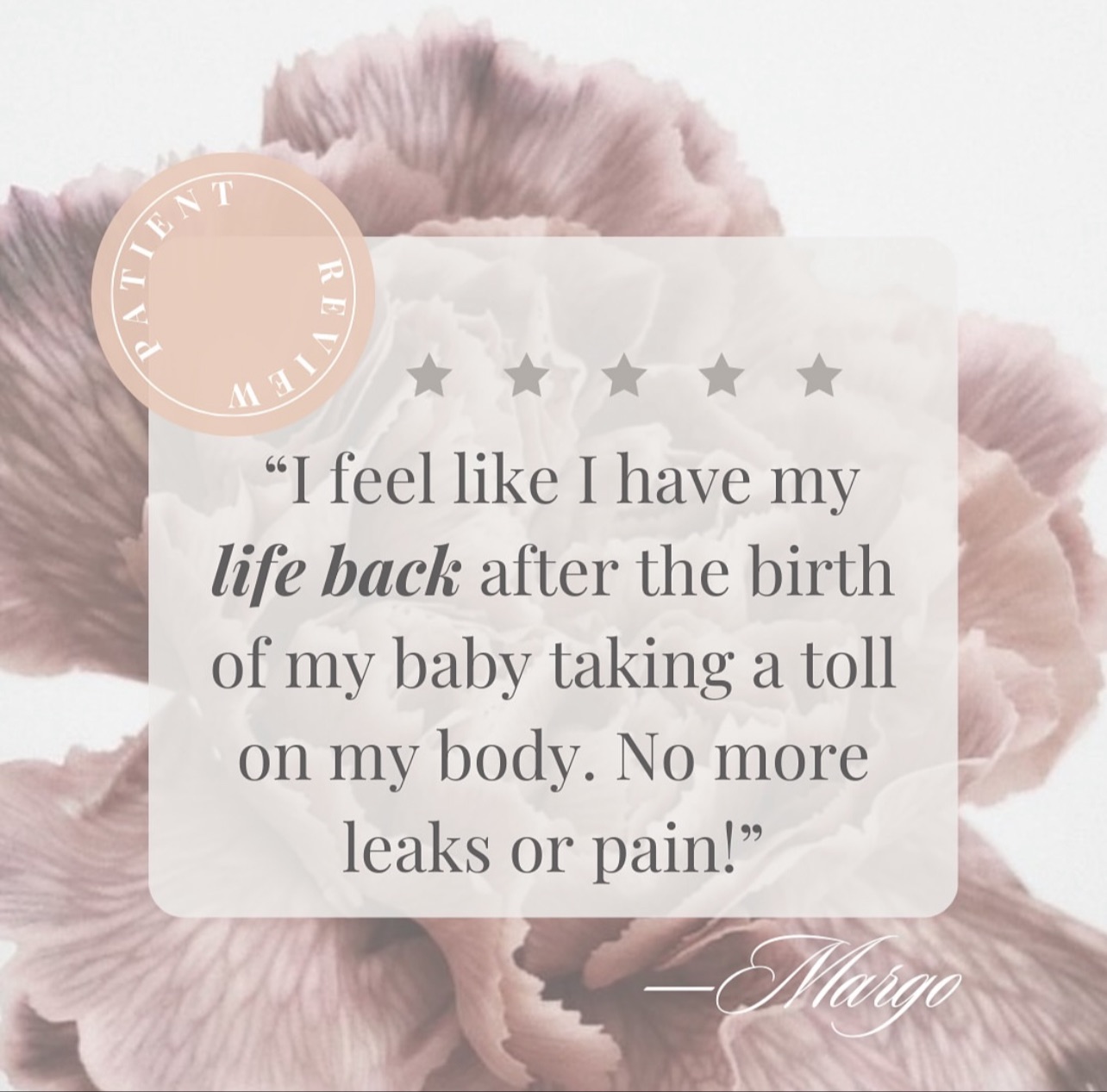 “For once, I invested in myself first and I'm reaping the benefits, which I'm so grateful for. I've had numerous wins through this process, and this is only the beginning. Surgery isn't always the answer, there are alternatives, and I found mine with this amazing team. Pelvic health is something so many of us know nothing about, but it's crucial. Thanks to Dr. Jess, I now have the tools, support, and confidence to continue healing. I can't recommend her enough. ”